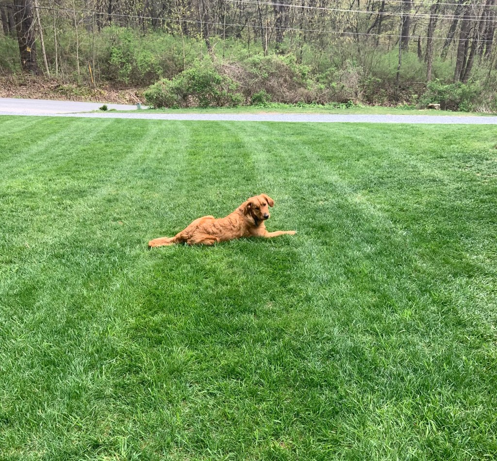 Our family dog, Betty is enjoying some stripes! My boys 9 and 7. They are “in training” for lawn care services 🤣Just need to be a little older before they can go out with their Dad!